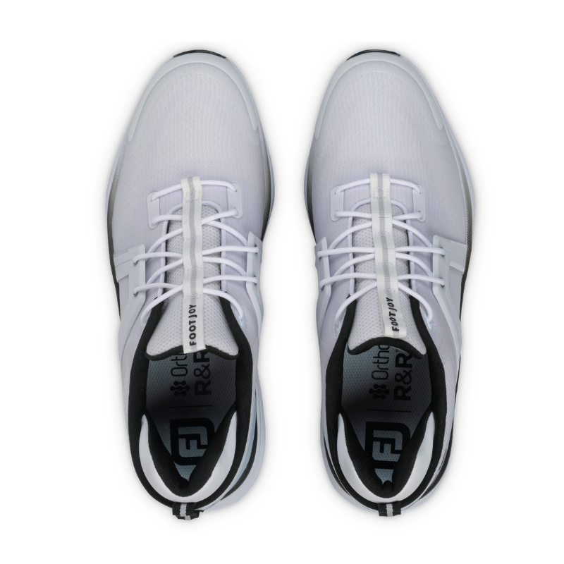 FootJoy HyperFlex är en mycket flexibel och sportig golfsko till herr med hög komfort och en mesh-ovandel som ger bra struktur och stöd samt en stabil Optiflex-yttersula med mjukspikar. Ovandelen är tillverkad i vakuumformad mesh med ribbstickad sadel och bootie-konstruktion som ger god struktur och bra stöd medan en dämpande Stratofoam-mellansula bidrar till den utmärkta komforten. Flex-lästen har en helrundad tåkaraktär, extra utrymme för framfot och hålfot samt en något smalare häl. En upphöjd tåsektion ger en mer sportig stil. Den flexibla Optiflex-yttersulan med kolfiberförstärkning har ett utmärkt fotfäste tack vare SoftSpikes Pulsar-mjukspikar med lågprofil och Fast Twist 3.0-infästning.