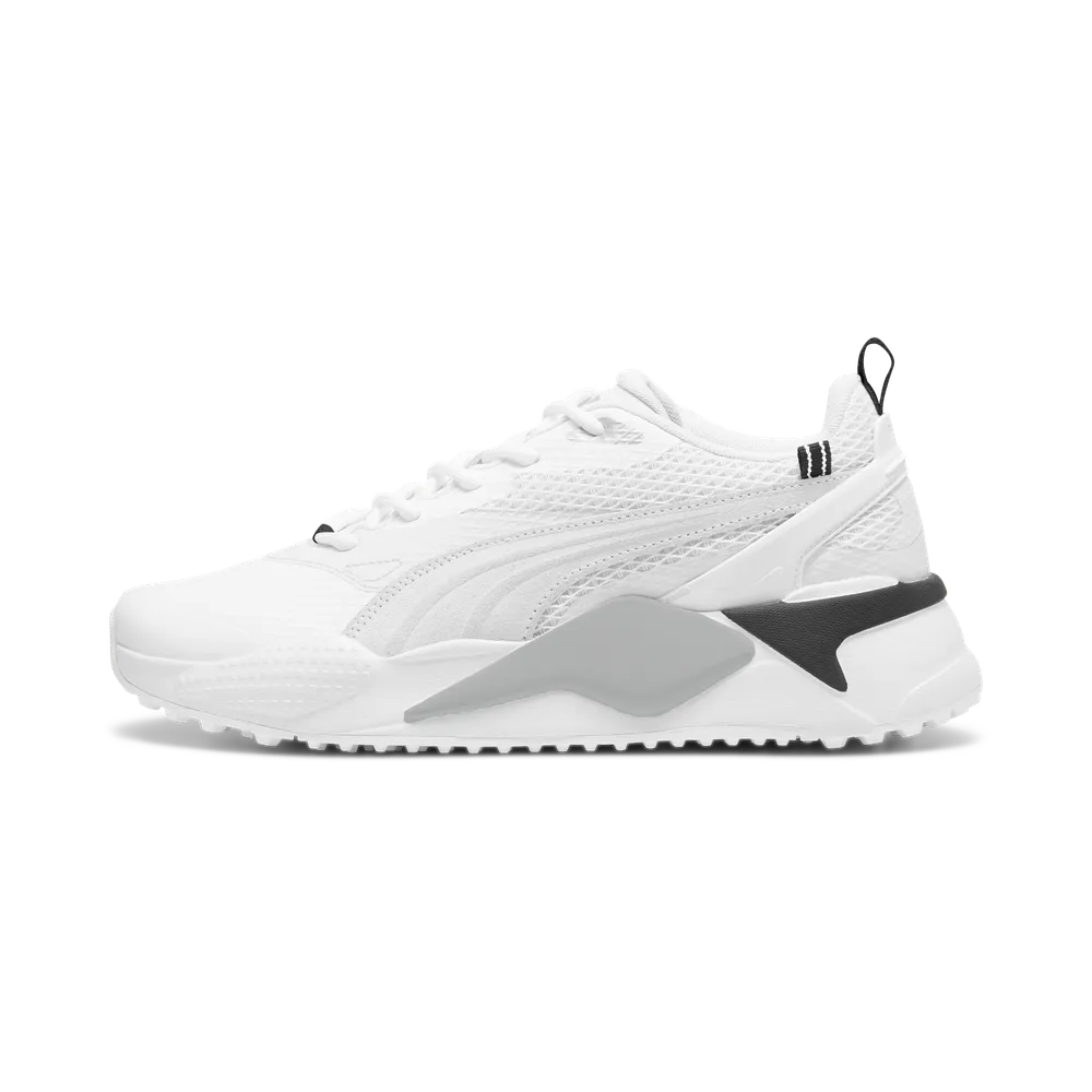 Succén är tillbaka, vill du ha en skön och snygg golfsko, då ska du köpa Puma GS-X Efekt som bygger på PUMA:s bästsäljande sneaker RS-X. Årets modell Puma GS-X Efekt har fått en uppdaterad ovandel i mjuk engineered Mesh och en stabiliserande bygel runt hälen för extra stöd när du går och svingar. Den rymliga lästen ger en väldigt skön komfort för fötterna direkt ur kartongen, och mellansula i Fusion Foam ger en mjuk och skön dämpning i varje steg. Yttersulan är tillverkad i Carbon Rubber vilket ger bra fäste tack vare mängder av dobbar, plus att ordet GOLF i kontrastfärg i sulan ger en cool extra effekt. När du köper din nya golfskor Puma GS-X Efekt matcha då med lite snygga golfkläder för en komplett look på banan.