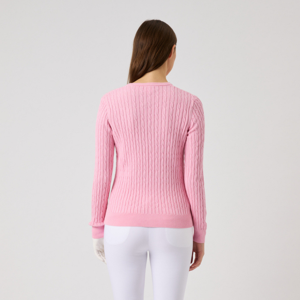 En kabelstickad tröja är ett måste i varje kvinnas golfgarderob. Madelene pullover från Daily Sports är en klassisk V-ringad golftröja med tight passform för en mer feminin känsla. Du kommer att älska den för mjukheten – tröjan är nämligen stickad med 5 % kashmir och resten bomull. En exklusiv, feminin golftröja som är lika snygg på golfklubben som på stan.
