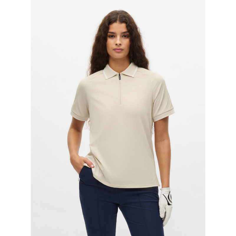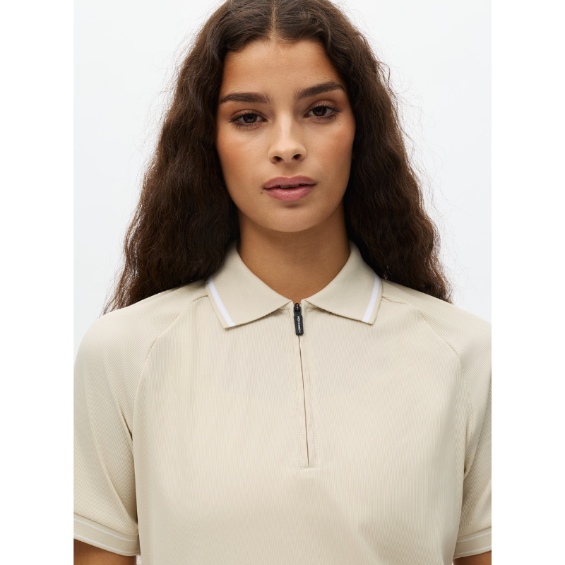 Rib poloshirt kombinerar en ren golfestetik med teknisk komfort. Den ribbade jerseyn faller snyggt och håller dig torr, medan dragkedjan vid halsen gör det enkelt att vädra efter behov. De diskreta detaljerna ger en sportig finish. Styla med skort eller capribyxa för en klassisk look som håller säsong efter säsong.